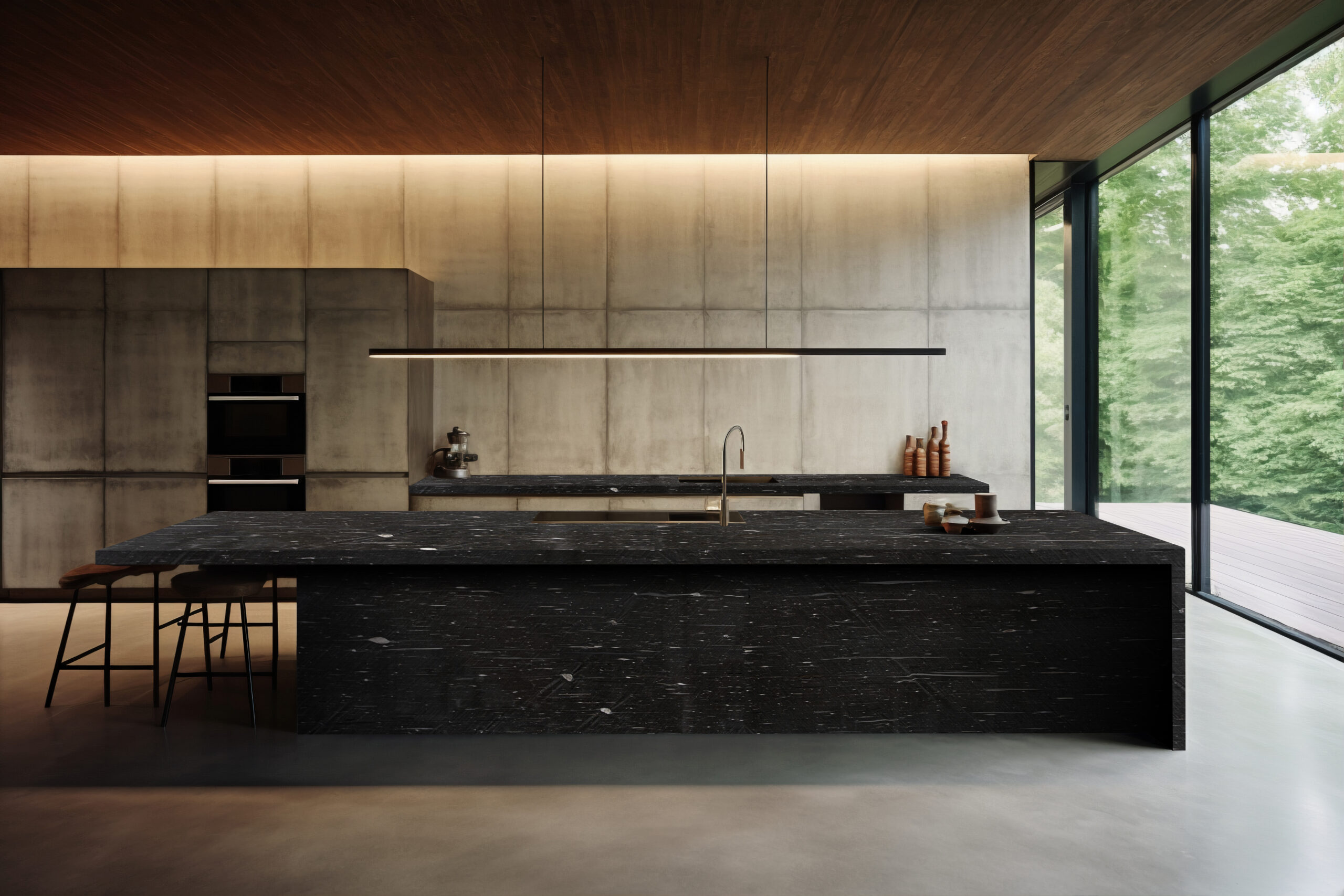 O quartzito Andromeda Black, batizado em homenagem à galáxia vizinha, funciona como uma escritura desse movimento, introduzindo uma expressão lúdica ao cotidiano. Devido à predominância de minerais vulcânicos em sua essência, possui um fundo preto acinzentado bem característico. Porém, é a presença do quartzo branco em suas camadas que acrescenta uma dimensão estética adicional a essa pedra, conferindo contraste mediante veios e glóbulos claros. Além de sua estética marcante, o Andromeda Black não deixa a desejar em termos de resistência e durabilidade, uma vez que possui alta resistência e não tem restrição de uso.
