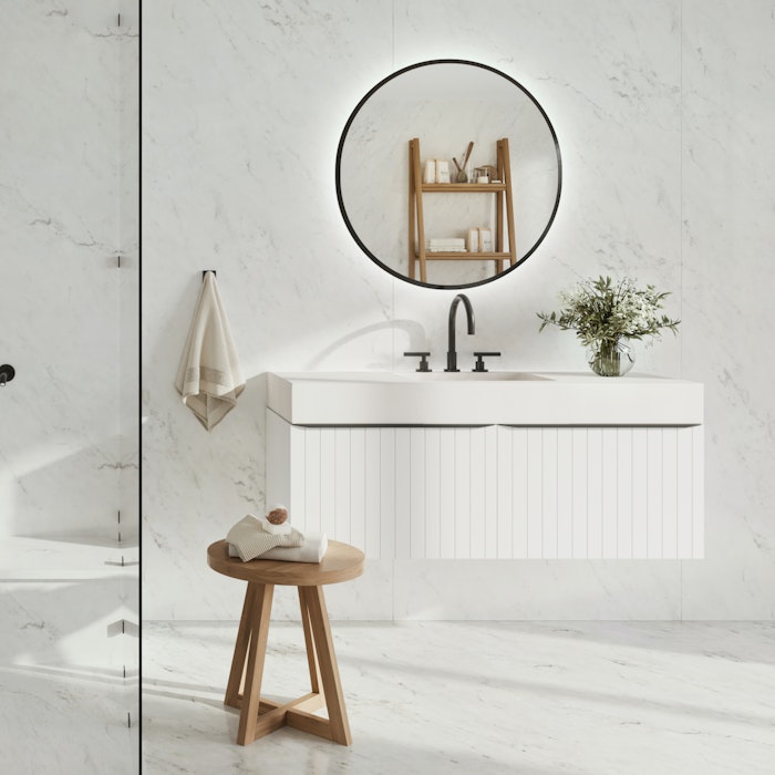O Salina inspira-se nos padrões de sal extravagantes que a maré baixa deixa na areia e nas rochas. As suas delicadas arestas brancas são nascem em um padrão assimétrico de veios cinzas, onde a base branca reinterpreta a elegância clássica do mármore de Carrara.